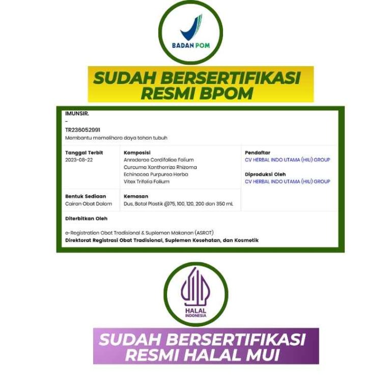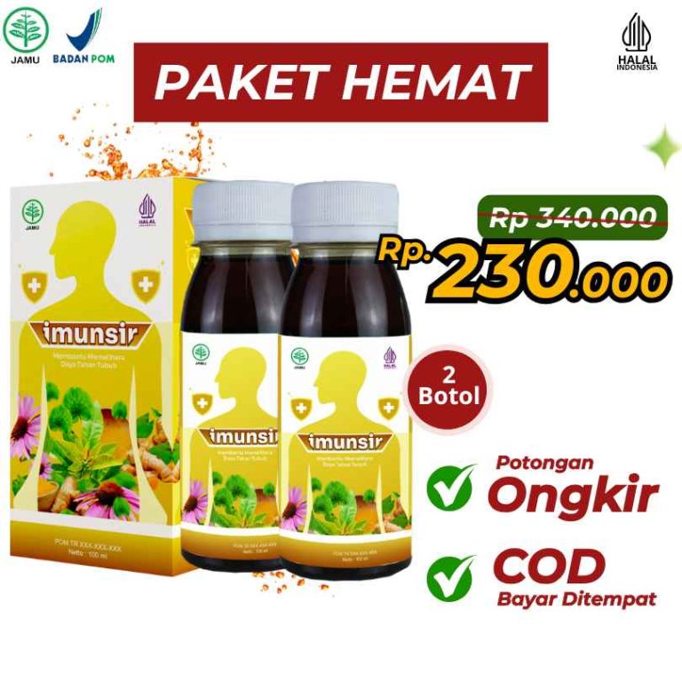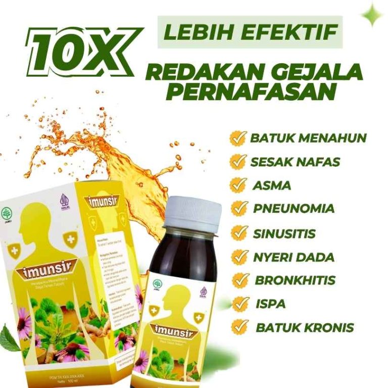 Imunsir merupakan herbal syrup yang bermanfaat untuk mempercepat sembuh dari berbagai penyakit pernafasan seperti batuk menahun, batuk kronis, asma, sinusitis dan lainnya serta juga untuk menjaga vitalitas tubuh.